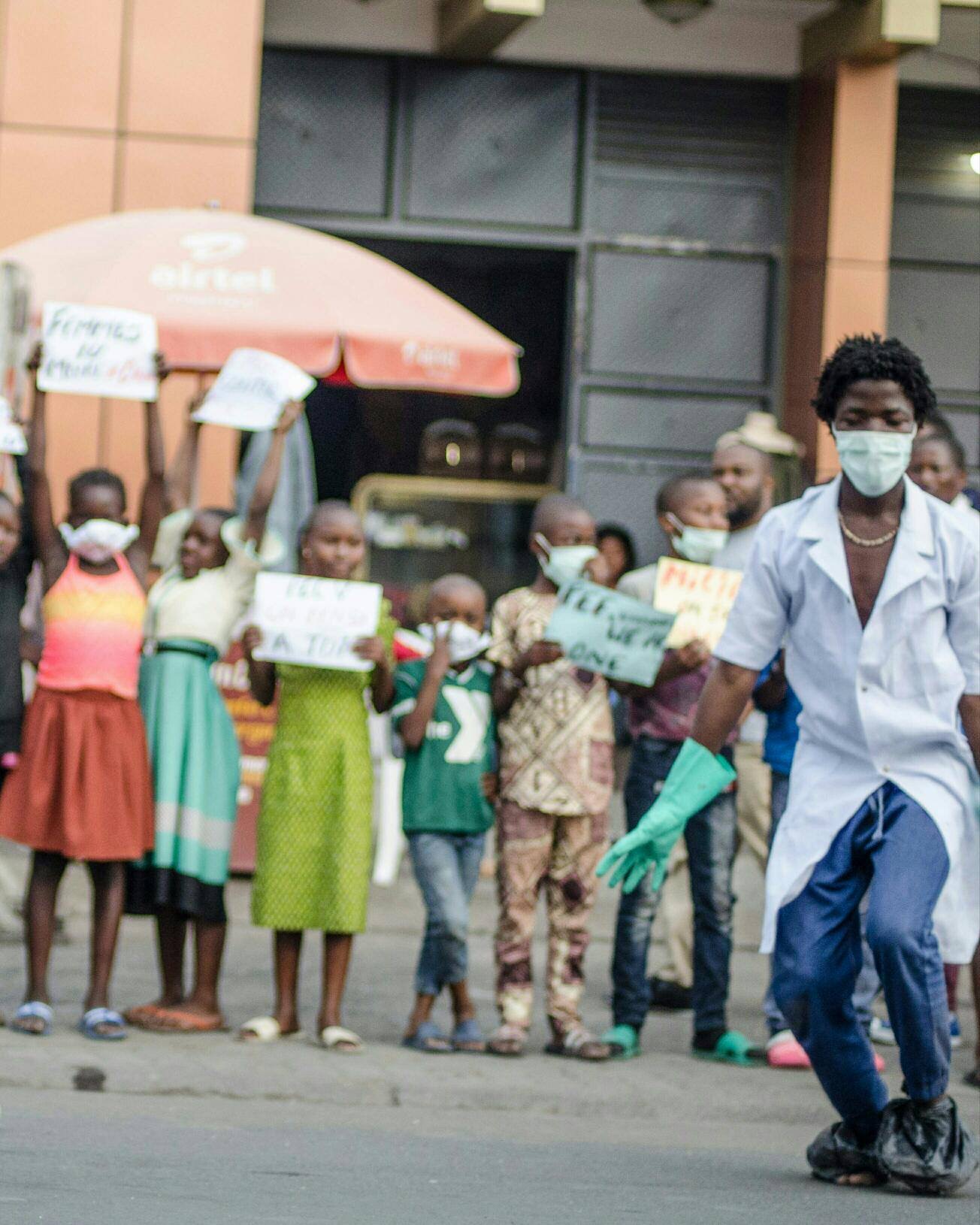 « Nous combattons les fausses croyances pour être victorieux face à cette maladie qui frappe aussi l’Afrique », explique Jean Baptiste, l’un des artistes participant à cette performance qui a commencé, à Goma au Nord-Kivu, sur la route 1 Km témoin rond-point 2 lampes.