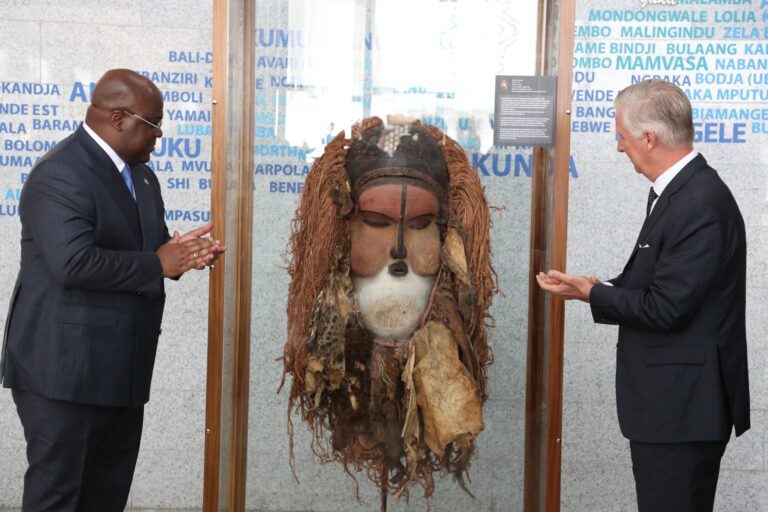 Le roi des belges, Philippe, a restitué ce mercredi 8 juin 2022, à la RDC un masque d’origine congolaise de la tribu Suku dénommé Kakuungu, après une brève allocution prononcée au musée national du Congo, situé dans la commune de Lingwala à Kinshasa.
