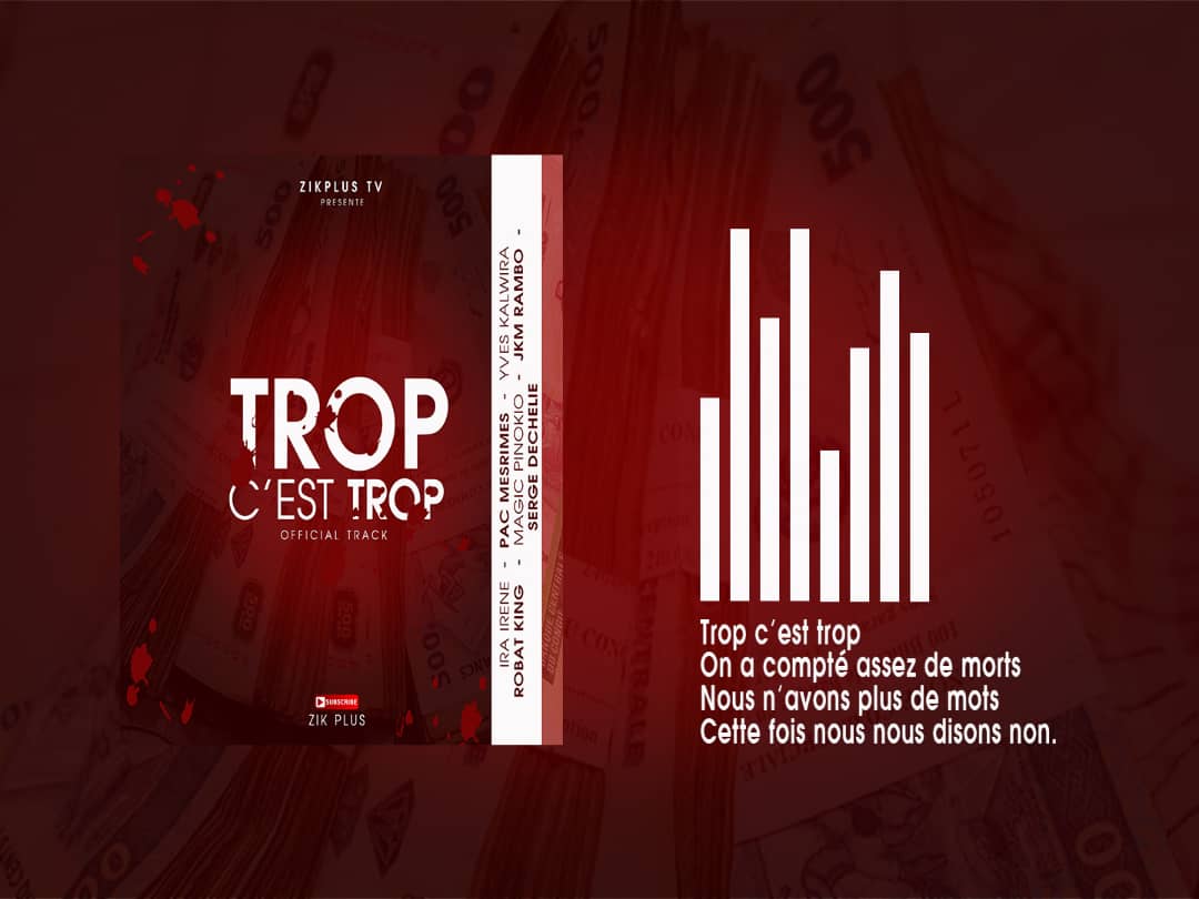 « on a compté assez de morts, nous n’avons plus de mots, cette fois nous disons non « , peu importe le récepteur de ce message artistique, le refrain en lui seul résume toute la chanson « Trop c’est trop. Il sied d’indiquer que ce projet est initié par l’artiste slameur Yves Kalwira.